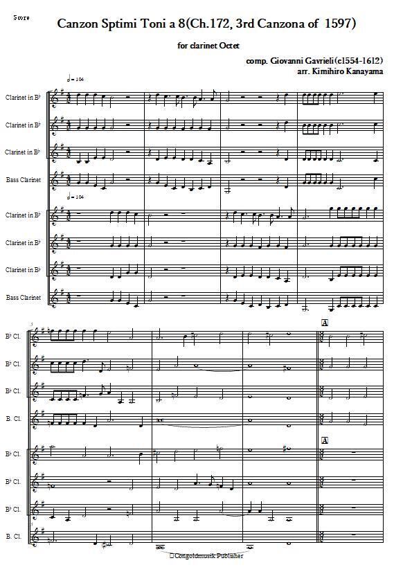 ジョバンニ・ガブリエリの有名な「第7旋法による8声のためのカンツォン第2番」をクラリネットアンサンブル用に編曲しました。