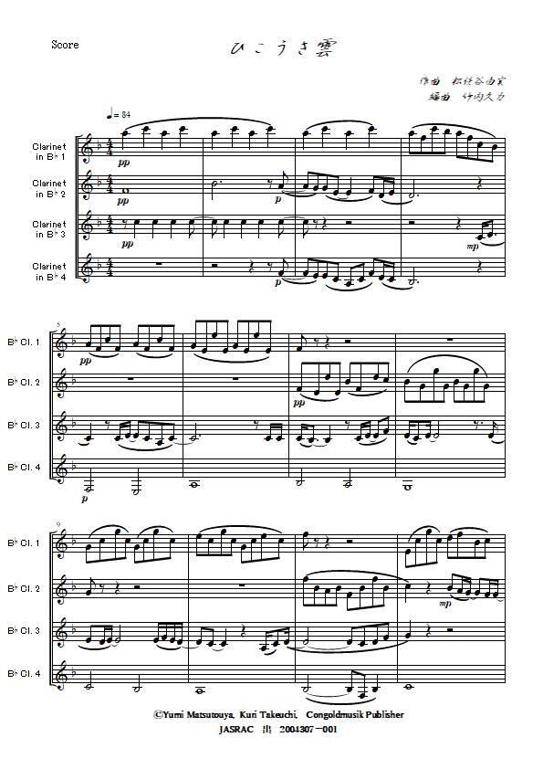 このさわやかな名曲を、クラリネット奏者として活躍されている竹内久力先生が編曲されました。繊細な響きが美しく、クラリネット・アンサンブルの楽しみを引き出してくれます。